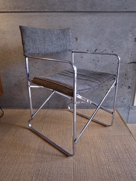 デンマークで仕入れたものですが年代やメーカーなど全く不明のフォールディングチェアです。金属製のパイプフレームに布クッションでとても軽量&コンパクト。普通なようでいてちょっとした工夫も感じられ微妙な魅力を感じる椅子です。意外に?掛け心地がとても宜しいです。