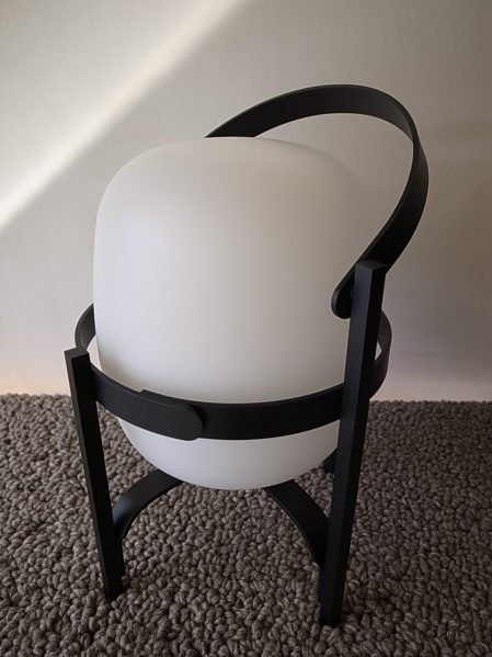 スペインの照明ブランド「SANTA&COLE」の充電式ランプ Ceatita Bateriaに外部でも使用できるタイプが加わっています。マットブラックのアルミのフレームに乳白ポリエチレンシェードで防雨防滴。室内はもちろんテラスでの食事やキャンプなどのアウトドアで大いに活躍しそうです。