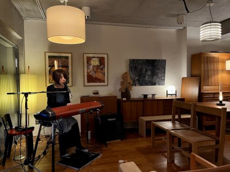 先月29日には展示に合わせたミュージックナイトの第一回、ピアニストの西島芳(かおり)さんのライブが行われ盛況に終わりました。タイムレスで暖かな光で包まれた店内は心地よい生の音楽で満たされてとても心地よい贅沢な時間となりました。お越しいただいた皆様ありがとうございました。次回は12/7(日)18:00からバロックヴァイオリンの大内山 薫さんの演奏があります。どうぞお楽しみに。